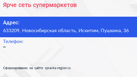 Ярче!, сеть супермаркетов по адресу 633209, Новосибирская область, Искитим, Пушкина, 36 в дальнейшем Организация, размещена в следующих категориях: