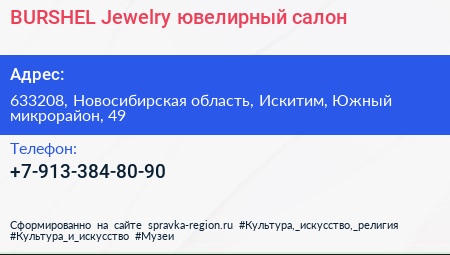 BURSHEL Jewelry, ювелирный салон по адресу 633208, Новосибирская область, Искитим, Южный микрорайон, 49 в дальнейшем Организация, размещена в следующих категориях: