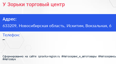 У Зорьки, торговый центр по адресу 633209, Новосибирская область, Искитим, Вокзальная, 6 в дальнейшем Организация, размещена в следующих категориях: