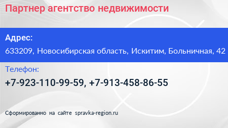 Партнер, агентство недвижимости по адресу 633209, Новосибирская область, Искитим, Больничная, 42 в дальнейшем Организация, размещена в следующих категориях: