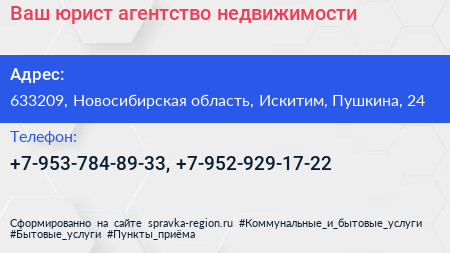 Ваш юрист, агентство недвижимости по адресу 633209, Новосибирская область, Искитим, Пушкина, 24 в дальнейшем Организация, размещена в следующих категориях: