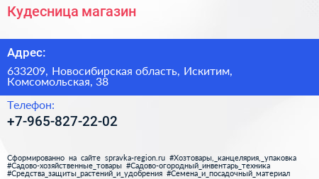 Кудесница, магазин по адресу 633209, Новосибирская область, Искитим, Комсомольская, 38 в дальнейшем Организация, размещена в следующих категориях: