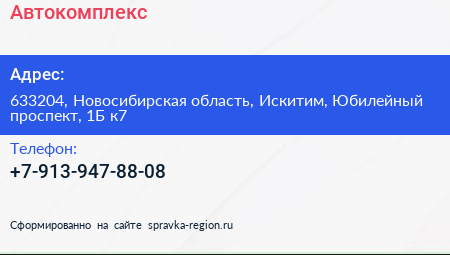 Автокомплекс по адресу 633204, Новосибирская область, Искитим, Юбилейный проспект, 1Б к7 в дальнейшем Организация, размещена в следующих категориях: