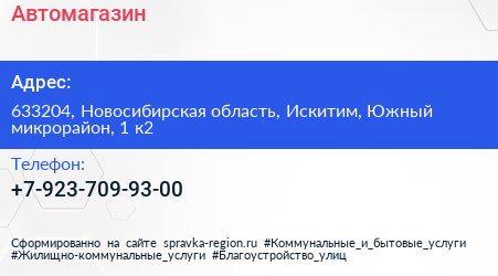 Автомагазин по адресу 633204, Новосибирская область, Искитим, Южный микрорайон, 1 к2 в дальнейшем Организация, размещена в следующих категориях: