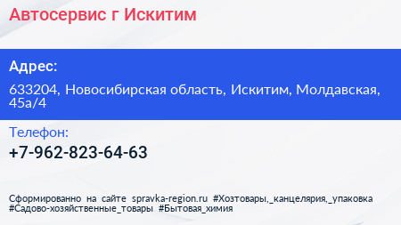 Автосервис, г. Искитим по адресу 633204, Новосибирская область, Искитим, Молдавская, 45а/4 в дальнейшем Организация, размещена в следующих категориях: