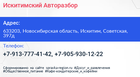 Адрес: Новосибирская область, Искитим, Советская, 397в