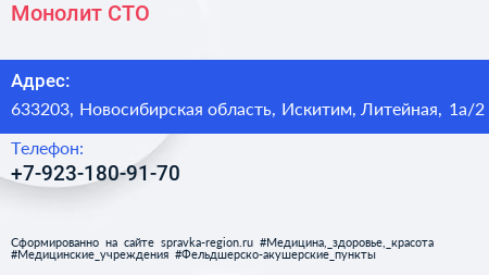 Монолит, СТО по адресу 633203, Новосибирская область, Искитим, Литейная, 1а/2 в дальнейшем Организация, размещена в следующих категориях: