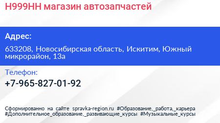 Н999НН, магазин автозапчастей по адресу 633208, Новосибирская область, Искитим, Южный микрорайон, 13а в дальнейшем Организация, размещена в следующих категориях:
