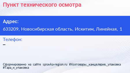 Пункт технического осмотра по адресу 633209, Новосибирская область, Искитим, Линейная, 1 в дальнейшем Организация, размещена в следующих категориях: