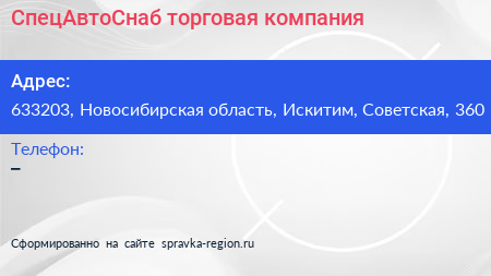 СпецАвтоСнаб, торговая компания по адресу 633203, Новосибирская область, Искитим, Советская, 360 в дальнейшем Организация, размещена в следующих категориях: