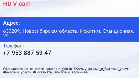 HD V-cam по адресу 633209, Новосибирская область, Искитим, Станционная, 24 в дальнейшем Организация, размещена в следующих категориях: