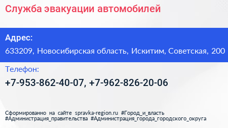 Служба эвакуации автомобилей по адресу 633209, Новосибирская область, Искитим, Советская, 200 в дальнейшем Организация, размещена в следующих категориях: