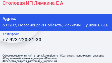 Столовая, ИП Лямкина Е.А. по адресу 633209, Новосибирская область, Искитим, Пушкина, 81Б в дальнейшем Организация, размещена в следующих категориях: