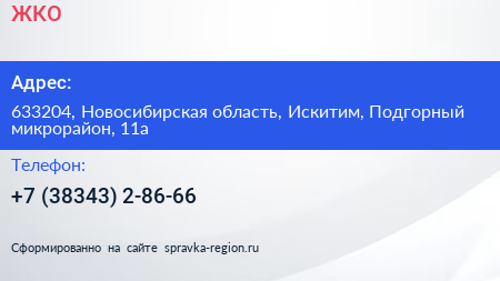 ЖКО по адресу 633204, Новосибирская область, Искитим, Подгорный микрорайон, 11а в дальнейшем Организация, размещена в следующих категориях: