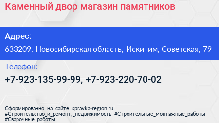 Каменный двор, магазин памятников по адресу 633209, Новосибирская область, Искитим, Советская, 79 в дальнейшем Организация, размещена в следующих категориях: