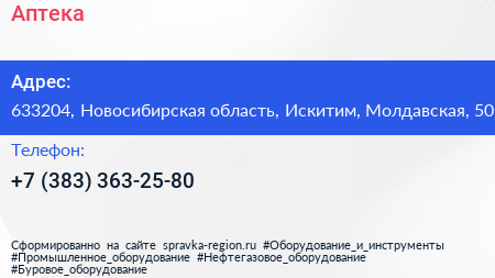 Аптека по адресу 633204, Новосибирская область, Искитим, Молдавская, 50 в дальнейшем Организация, размещена в следующих категориях: