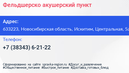 Фельдшерско-акушерский пункт по адресу 633223, Новосибирская область, Искитим, Центральная, 5а в дальнейшем Организация, размещена в следующих категориях: