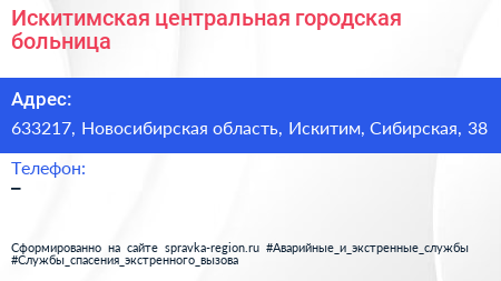 Искитимская центральная городская больница по адресу 633217, Новосибирская область, Искитим, Сибирская, 38 в дальнейшем Организация, размещена в следующих категориях: