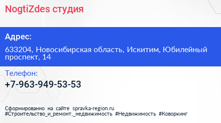 NogtiZdes, студия по адресу 633204, Новосибирская область, Искитим, Юбилейный проспект, 14 в дальнейшем Организация, размещена в следующих категориях: