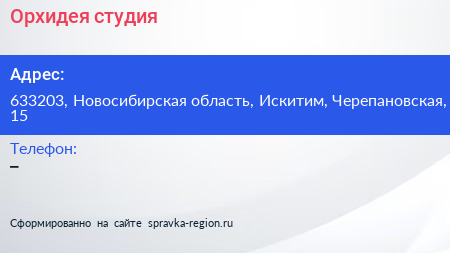 Орхидея, студия по адресу 633203, Новосибирская область, Искитим, Черепановская, 15 в дальнейшем Организация, размещена в следующих категориях: