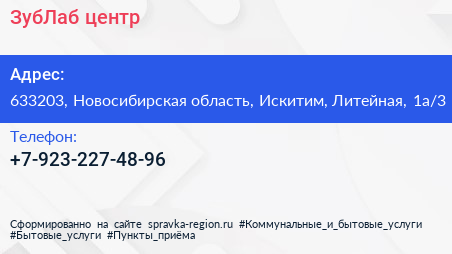 ЗубЛаб, центр по адресу 633203, Новосибирская область, Искитим, Литейная, 1а/3 в дальнейшем Организация, размещена в следующих категориях: