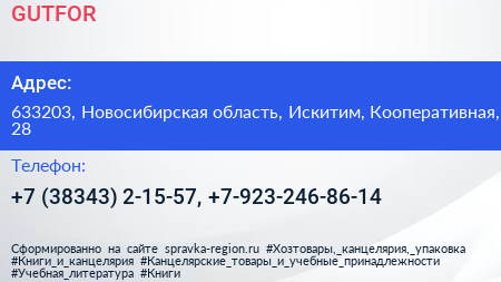 GUTFOR по адресу 633203, Новосибирская область, Искитим, Кооперативная, 28 в дальнейшем Организация, размещена в следующих категориях: