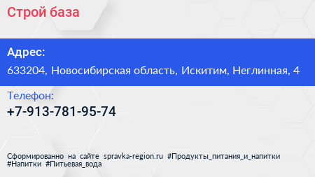 Строй база по адресу 633204, Новосибирская область, Искитим, Неглинная, 4 в дальнейшем Организация, размещена в следующих категориях: