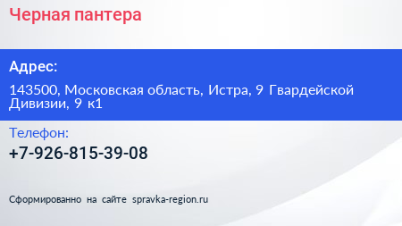Черная пантера по адресу 143500, Московская область, Истра, 9 Гвардейской Дивизии, 9 к1 в дальнейшем Организация, размещена в следующих категориях:
