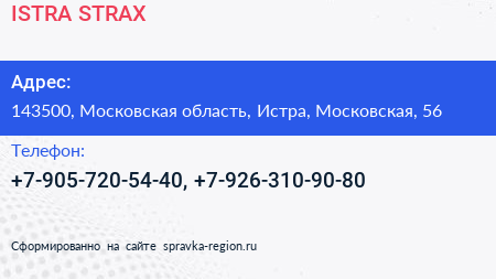 ISTRA-STRAX по адресу 143500, Московская область, Истра, Московская, 56 в дальнейшем Организация, размещена в следующих категориях:
