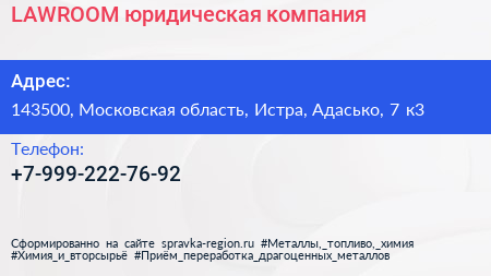 LAWROOM, юридическая компания по адресу 143500, Московская область, Истра, Адасько, 7 к3 в дальнейшем Организация, размещена в следующих категориях: