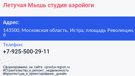 Летучая Мышь, студия аэройоги по адресу 143500, Московская область, Истра, площадь Революции, 6 в дальнейшем Организация, размещена в следующих категориях: