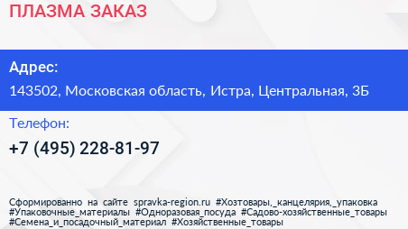 ПЛАЗМА ЗАКАЗ по адресу 143502, Московская область, Истра, Центральная, 3Б в дальнейшем Организация, размещена в следующих категориях: