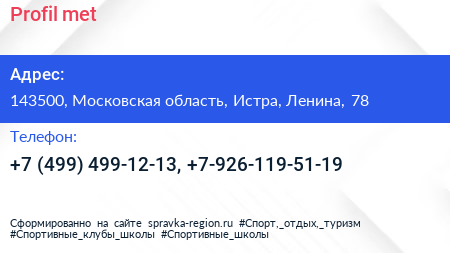 Profil-met по адресу 143500, Московская область, Истра, Ленина, 78 в дальнейшем Организация, размещена в следующих категориях: