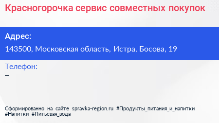 Красногорочка, сервис совместных покупок по адресу 143500, Московская область, Истра, Босова, 19 в дальнейшем Организация, размещена в следующих категориях: