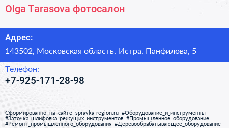 Olga Tarasova, фотосалон по адресу 143502, Московская область, Истра, Панфилова, 5 в дальнейшем Организация, размещена в следующих категориях: