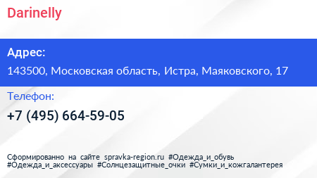 Darinelly по адресу 143500, Московская область, Истра, Маяковского, 17 в дальнейшем Организация, размещена в следующих категориях: