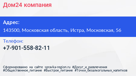 Дом24, компания по адресу 143500, Московская область, Истра, Московская, 56 в дальнейшем Организация, размещена в следующих категориях: