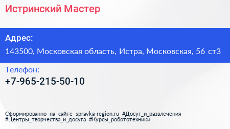 Истринский Мастер по адресу 143500, Московская область, Истра, Московская, 56 ст3 в дальнейшем Организация, размещена в следующих категориях: