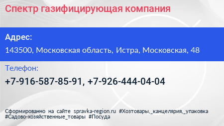 Спектр, газифицирующая компания по адресу 143500, Московская область, Истра, Московская, 48 в дальнейшем Организация, размещена в следующих категориях: