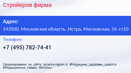 Стройкров, фирма по адресу 143500, Московская область, Истра, Московская, 56 ст10 в дальнейшем Организация, размещена в следующих категориях: