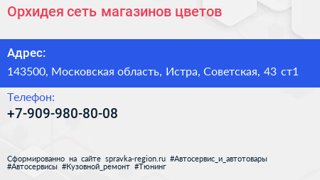 Орхидея, сеть магазинов цветов по адресу 143500, Московская область, Истра, Советская, 43 ст1 в дальнейшем Организация, размещена в следующих категориях: