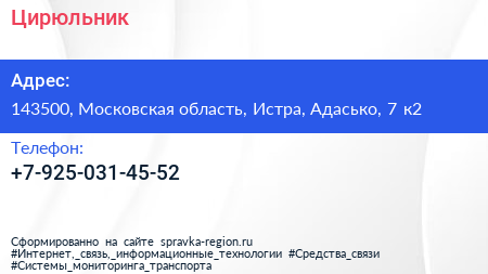 Для связи с организацией воспользуйтесь номером телефона: +7-925-031-45-52. Ежедневно с 09:00 до 21:00, вы можете обратиться в эту организацию.