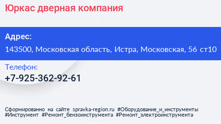 Юркас, дверная компания по адресу 143500, Московская область, Истра, Московская, 56 ст10 в дальнейшем Организация, размещена в следующих категориях: