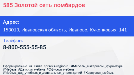 585*Золотой, сеть ломбардов по адресу 153013, Ивановская область, Иваново, Куконковых, 141 в дальнейшем Организация, размещена в следующих категориях: