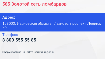 585*Золотой, сеть ломбардов по адресу 153000, Ивановская область, Иваново, проспект Ленина, 26 в дальнейшем Организация, размещена в следующих категориях: