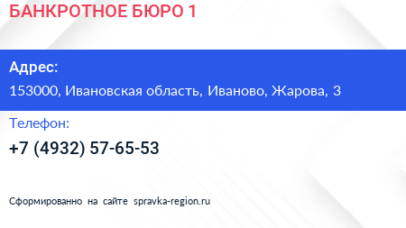БАНКРОТНОЕ БЮРО №1 по адресу 153000, Ивановская область, Иваново, Жарова, 3 в дальнейшем Организация, размещена в следующих категориях: