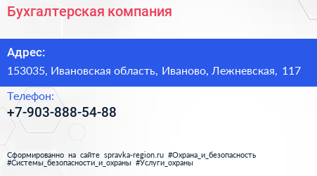 Бухгалтерская компания по адресу 153035, Ивановская область, Иваново, Лежневская, 117 в дальнейшем Организация, размещена в следующих категориях: