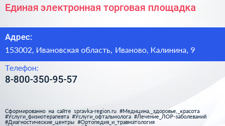 Единая электронная торговая площадка по адресу 153002, Ивановская область, Иваново, Калинина, 9 в дальнейшем Организация, размещена в следующих категориях: