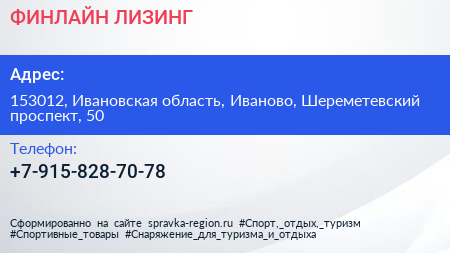 ФИНЛАЙН-ЛИЗИНГ по адресу 153012, Ивановская область, Иваново, Шереметевский проспект, 50 в дальнейшем Организация, размещена в следующих категориях: