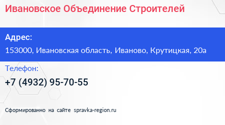 Ивановское Объединение Строителей по адресу 153000, Ивановская область, Иваново, Крутицкая, 20а в дальнейшем Организация, размещена в следующих категориях: